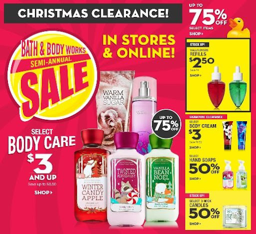 Hot Bath Body Works Huge 75 Off Semi Annual Sale And Christmas Clearance Is Live Items Only 2 50 Bath And Body Works Body Works Bath And Body